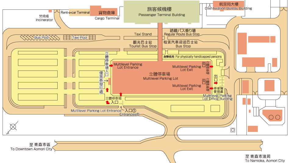 • 遇到事故或被盜時 → 青森機場停車場(TEL : 017-739-9104)・青森機場管理事務所(TEL : 017-739-2121)